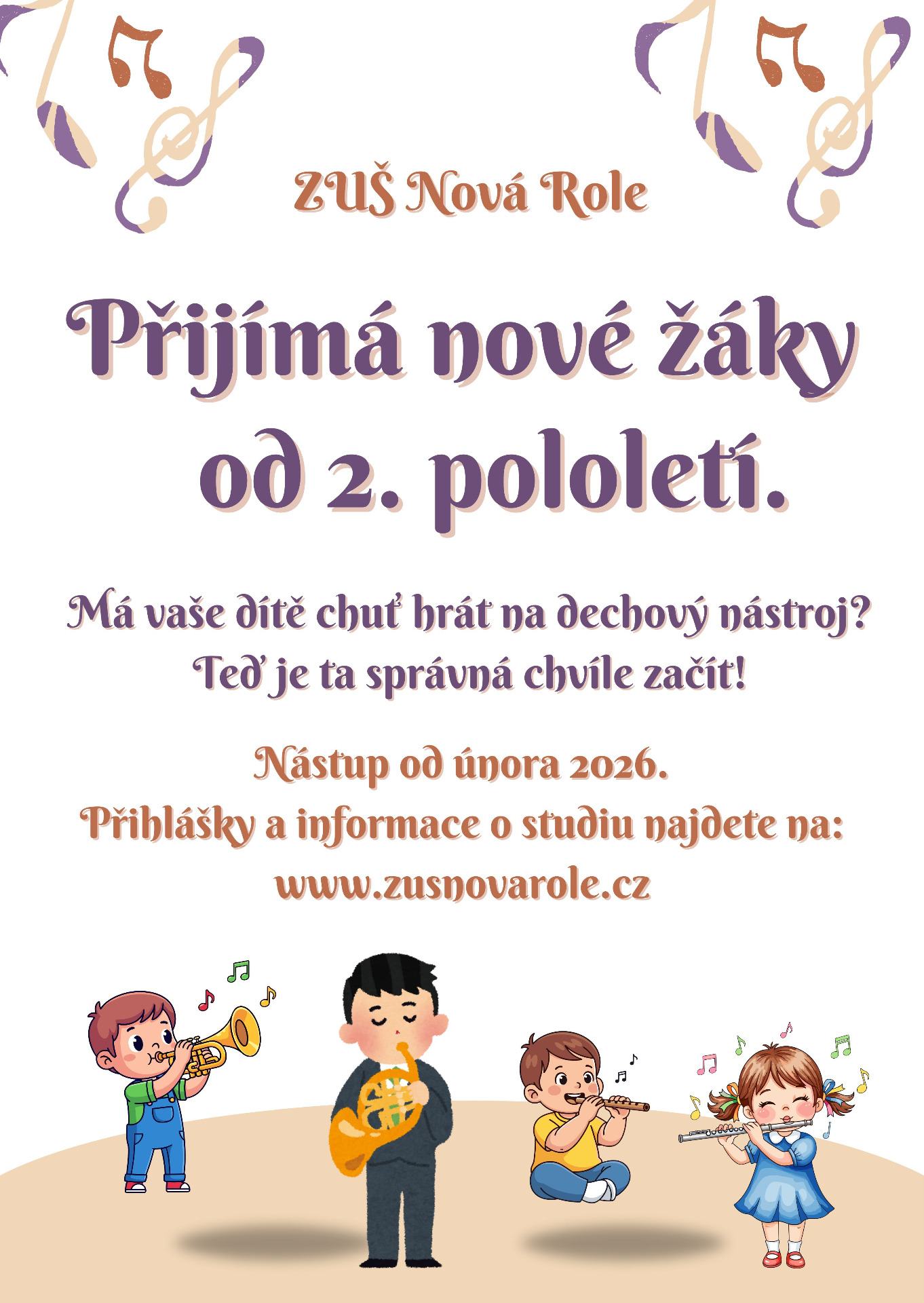 Navštívili jste stránky Základní umělecké školy v Nové Roli, která poskytuje vzdělávání v uměleckém oboru hudebním, výtvarném a pro předškoláky v Přípravné estetické výchově. Žáci se tak připravují pro následné vzdělávání na středních školách uměleckého zaměření a v konzervatořích, popřípadě pro studium na vysokých školách s uměleckým nebo pedagogickým zaměřením. Žáci výtvarného i hudebního oboru se každoročně účastní celé řady přehlídek, festivalů a soutěží.